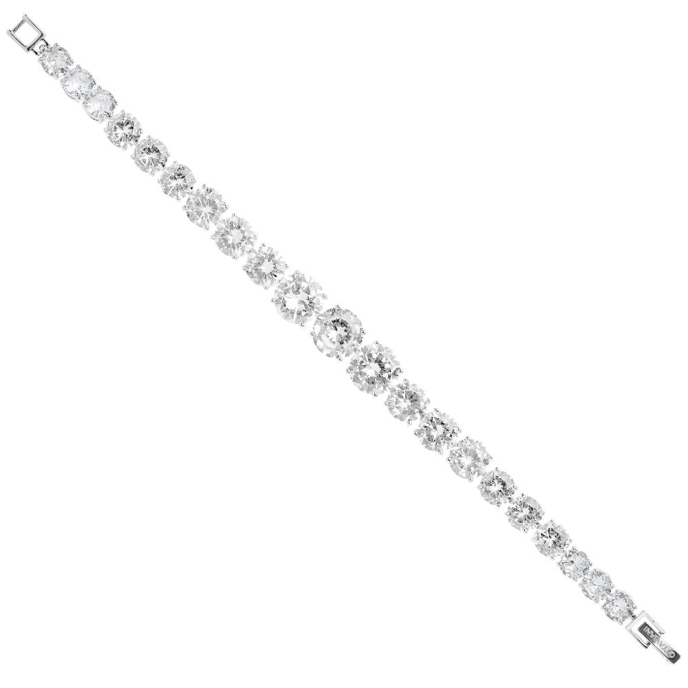 Bracciale Tennis rodiato con cristalli di cubic zirconia bianchi posti in successione a scalare in dimensione, abbinato alla parure 500906 di OTTAVIANI Bijoux.