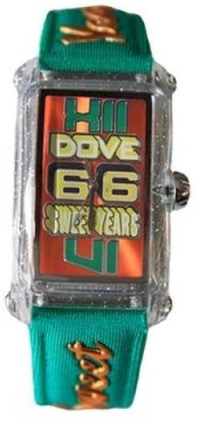 Orologio SWEET YEARS by Chronotech Unisex Verde Acido e Arancione. Con Cassa Piccola Rettangolare in Policarbonato e Glitter Trasparente da 26,5x47mm. Quadrante con Fondo Arancione e la simpatica Scritta "Dove 66 Sweet Years" Fondello in Acciaio Inossidabile Anallergico, Cinturino in Pelle e tessuto, Movimento Analogico al Quarzo, Funzioni: 3 Sfere solo Tempo e Resistenza all'acqua di 3 ATM (30 Metri). Originale e Astuccio con possibilità di scelta (vedi foto) e Garanzia (2 anni).