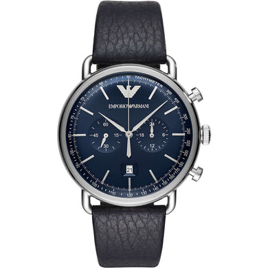 EMPORIO ARMANI AR11105 Aviator Orologio Cronografo Uomo in Pelle Blu Notte