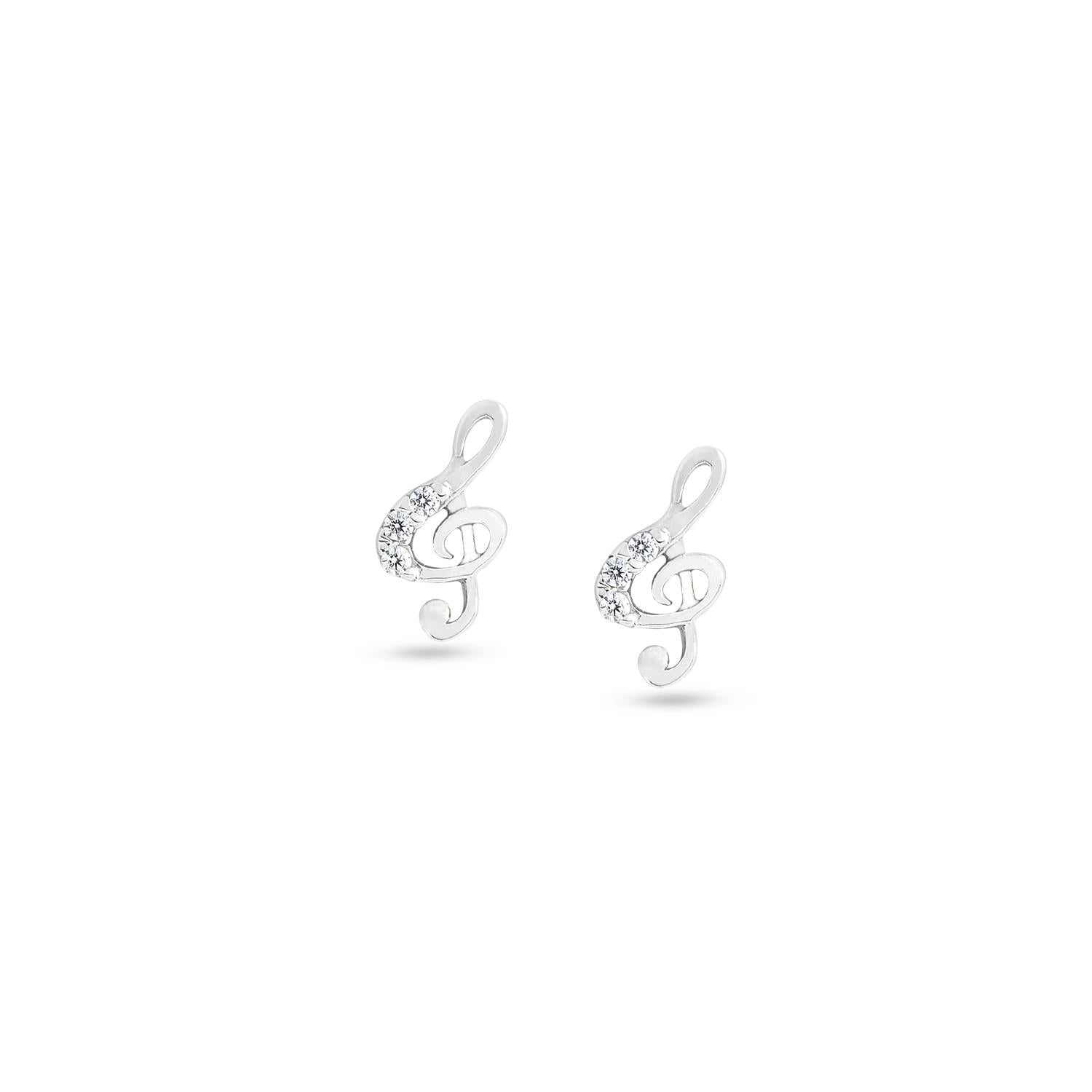 Orecchini a bottone da Donna di AMBROSIA Gioielli a Forma di Chiave di Violino in Oro 750‰ Bianco Rodiato con Zirconi incolore incastonati. La chiusura è a perno e farfalla.
