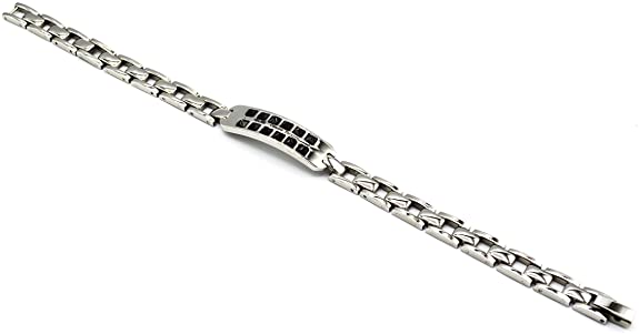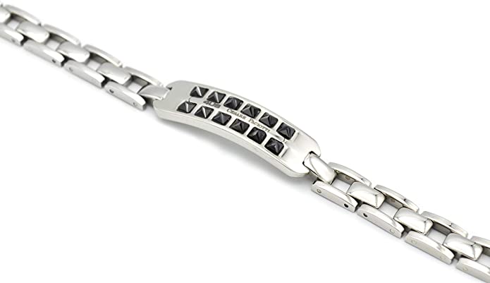 4US Gioielli 4UBR0729 Bracciale da Uomo in Acciaio con Targhetta e Pietre Nere