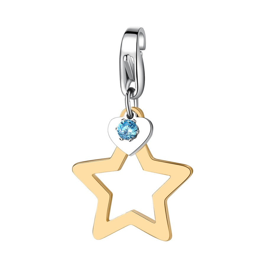 Charm a forma di Stella in acciaio PVD oro 14k con cuore e cristallo celeste S'Agapò HAPPY SHA268