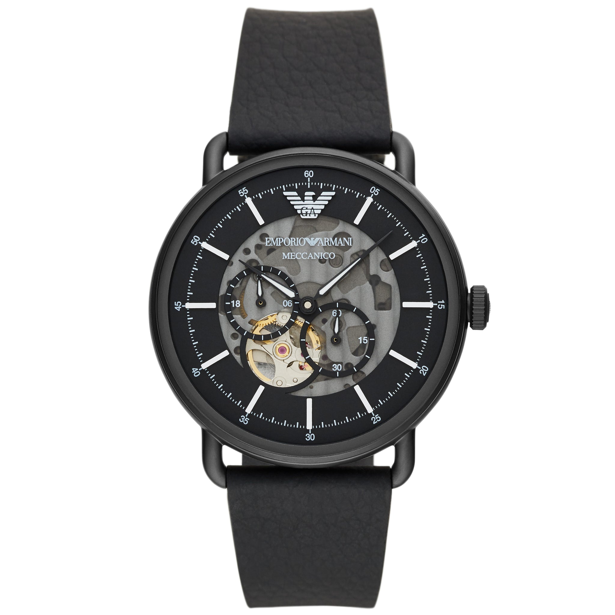 EMPORIO ARMANI AR60028 AVIATOR Orologio Meccanico Multifunzione Uomo in Pelle Nero
